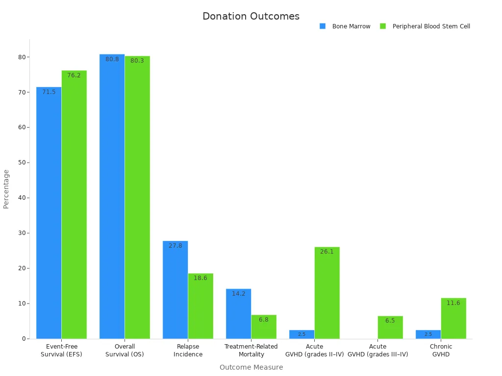 Data shows these differences. PBSC transplants have higher survival rates (76.2% vs. 71.5%) and lower relapse rates (18.6% vs. 27.8%) than bone marrow transplants. But bone marrow transplants have fewer severe GVHD cases. Doctors use this information to choose the best method for each patient.